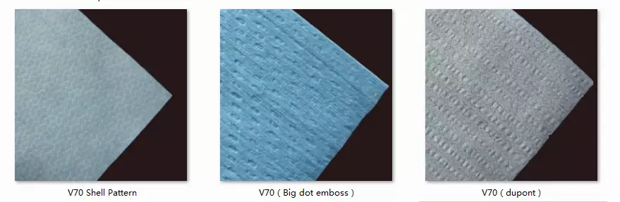 3) Вискозное волокно + ПЭТ (доступно в различных пропорциях, вес: 55/70 г / м2, ширина: 2050 мм, 3100 мм)
